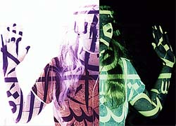 Die abschließende Cross-Entwicklungstechnik des Filmmaterials, die bei einem Teil der Aufnahmen zum Einsatz kam, fügt diesen eine weitere Ebene der Verfremdung hinzu: Links das crossentwickelte Negativ, rechts das entsprechende Positiv.